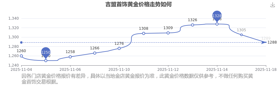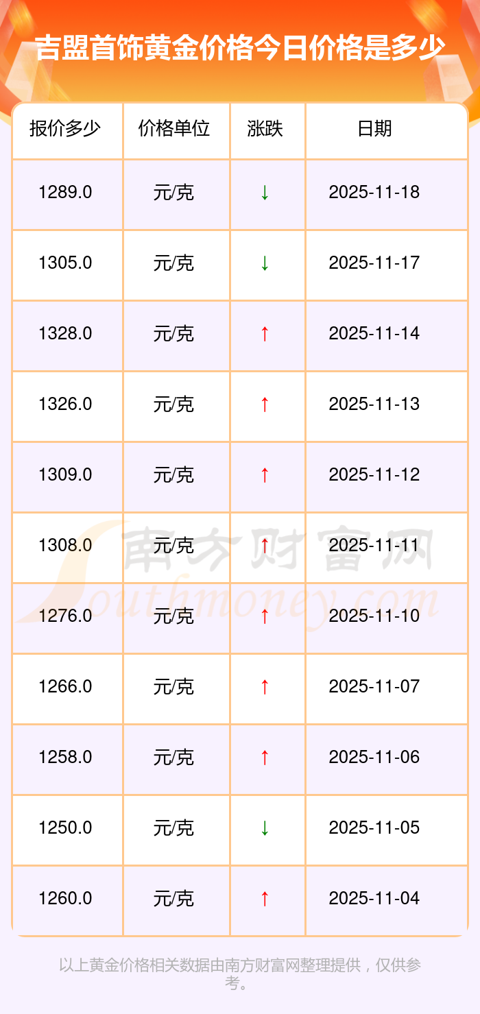 今天黄金价格行情如何?现在一克黄金的售价是多少?黄金是种优良的导电导热材料,具有良好的导热特性。因其化学稳定性高、抗氧化性强,能够制作高精度电子元件,故而常用于电子工业中的特殊电路设计。1289.0元/克成为吉盟首饰今日 黄金价格的最新交易的价格。