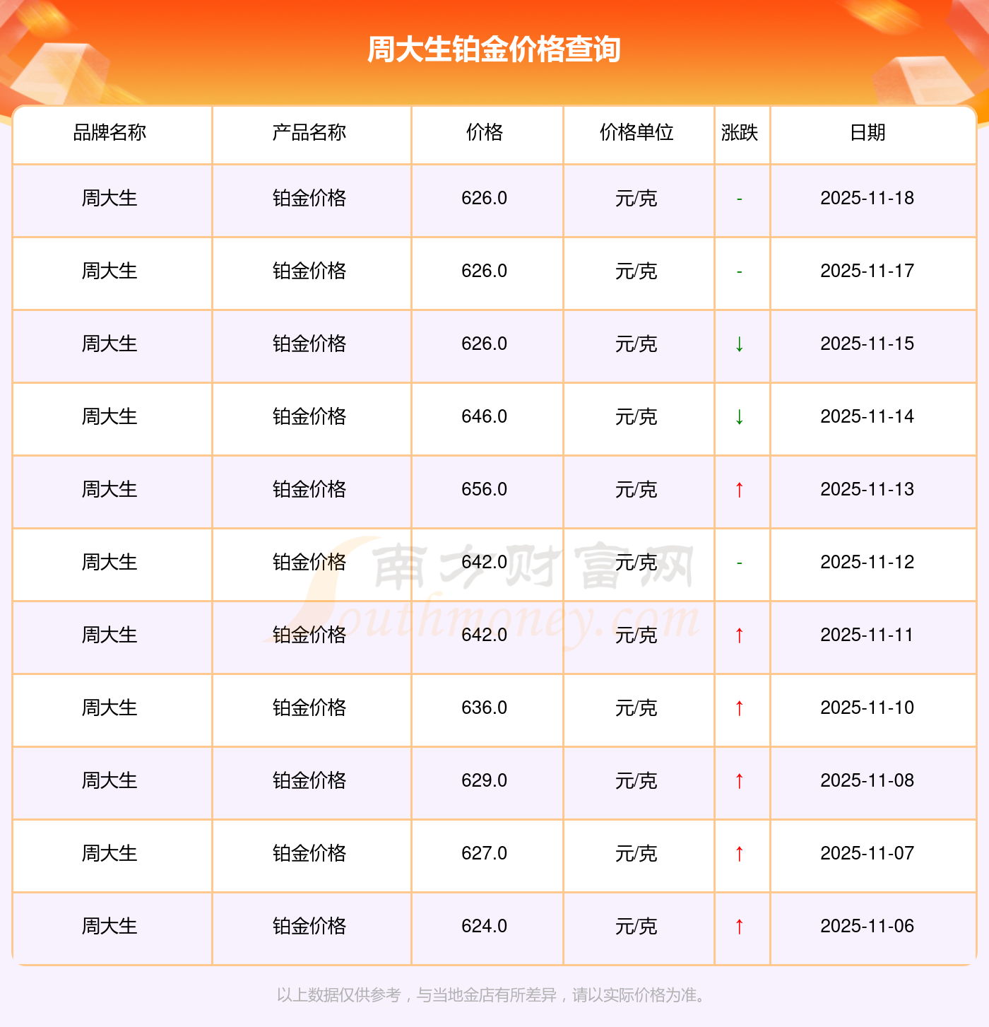 626.0元/克的价格,是周大生今日 铂金价格的最新行情。