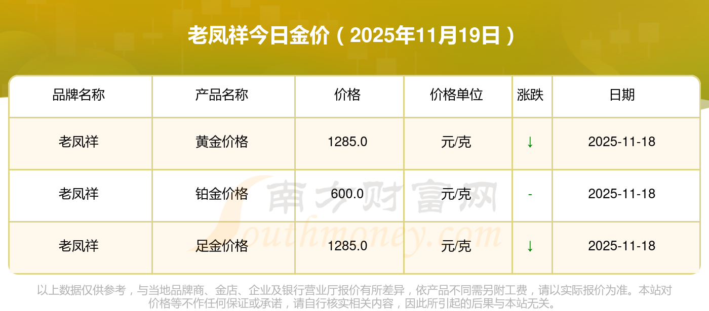 老凤祥今日金价查询