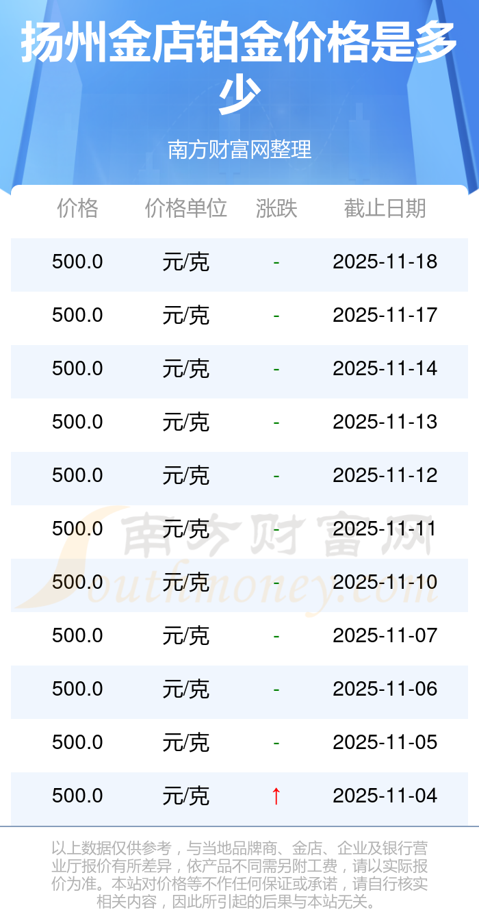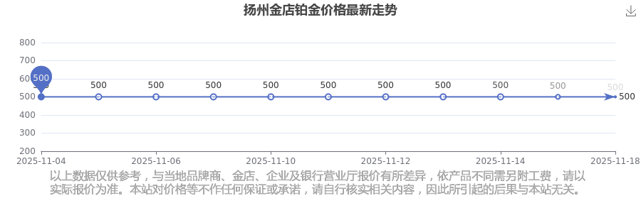 扬州金店 铂金价格在今日更新至500.0元/克。