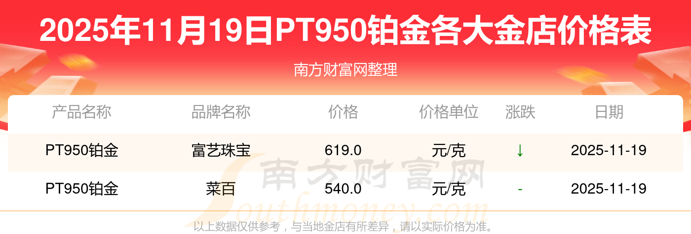 2025年11月19日各大金店PT950铂金价格一克多少钱?各大金店PT950铂金价格最新公布