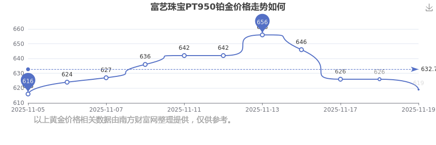 富艺珠宝今日PT950铂金多少一克?最新富艺珠宝PT950铂金报价实时行情走势图,一起来看看吧!