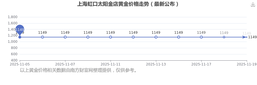 2025年11月19日,上海虹口太阳金店的黄金价格标价达到 1149.0元/克。
