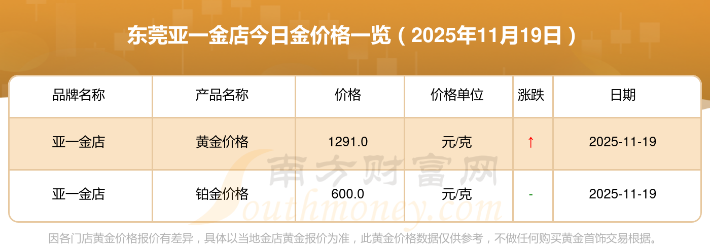 2025年11月19日亚一金店金条多少钱1克 现在东莞亚一金店黄金价格查询