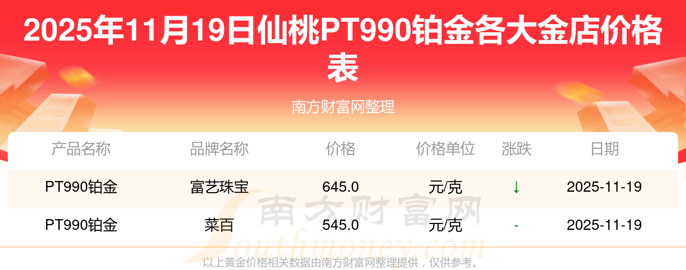 二、2025年11月19日今日仙桃各金店PT990铂金价格是多少钱一克?