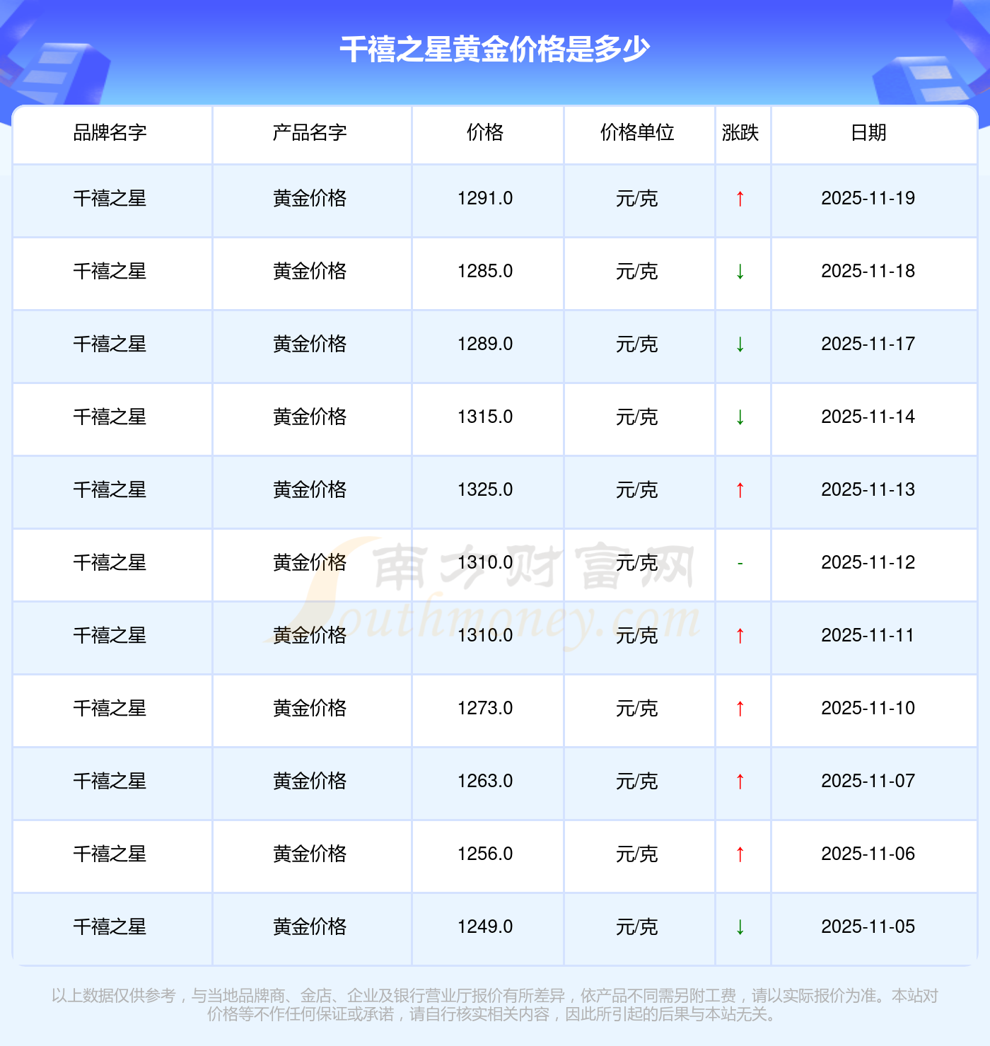 想查询今日黄金价格,当下黄金一克具体售价几何?黄金是一种优良的导电导热材料,具有良好的导热特性。黄金常用于电子工业中的特殊电路设计,因其化学稳定性高、抗氧化性强,可制作高精度电子元件。今日千禧之星黄金价格最新是1291.0元/克。