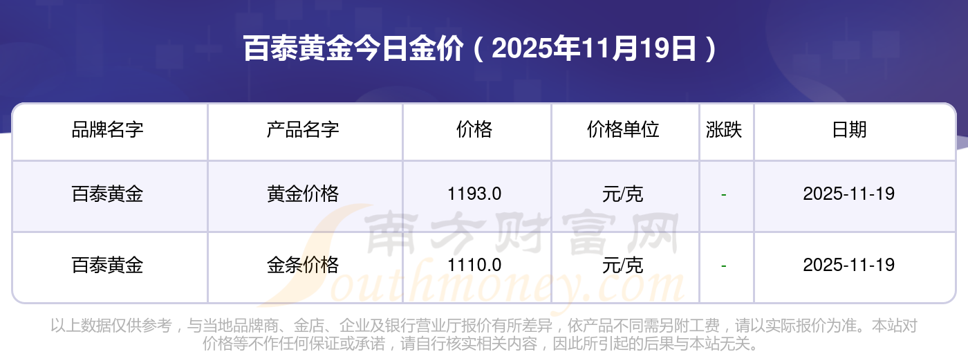 2025年11月19日,周大福、周大福、周大福、周大福、周大福、周大福、周大福、老凤祥、老凤祥、老凤祥、周六福等各大金店品牌黄金价格今日价格如下:周大福1295.0元/克、周大福619.0元/克、周大福1295.0元/克、周大福45120.0、周大福17690.0、周大福40700.0、周大福1133.0元/克、老凤祥1291.0元/克、老凤祥600.0元/克、老凤祥1291.0元/克、周六福1263.0元/克。