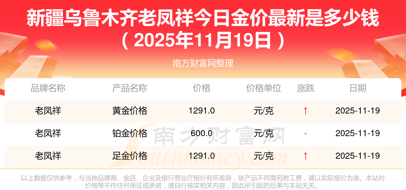 2025年11月19日新疆乌鲁木齐老凤祥黄金今日价格最新查询,今日老凤祥最新黄金价格是多少钱,随小编来了解一下详情。