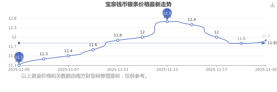 目前宝泉钱币 银条价格的价格,今日最新为11.9元/克。
