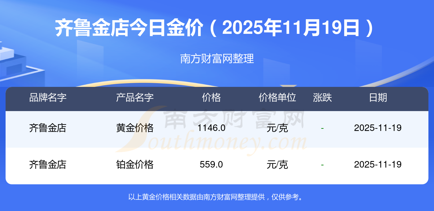 现在齐鲁金店黄金价格是多少钱1克_2025年齐鲁金店今日金价是多少钱一克,最新齐鲁金店查询,2025年11月19日齐鲁金店铂金价格现在每克多少钱?最新齐鲁金店铂金价格报价公布,一起来看看吧!