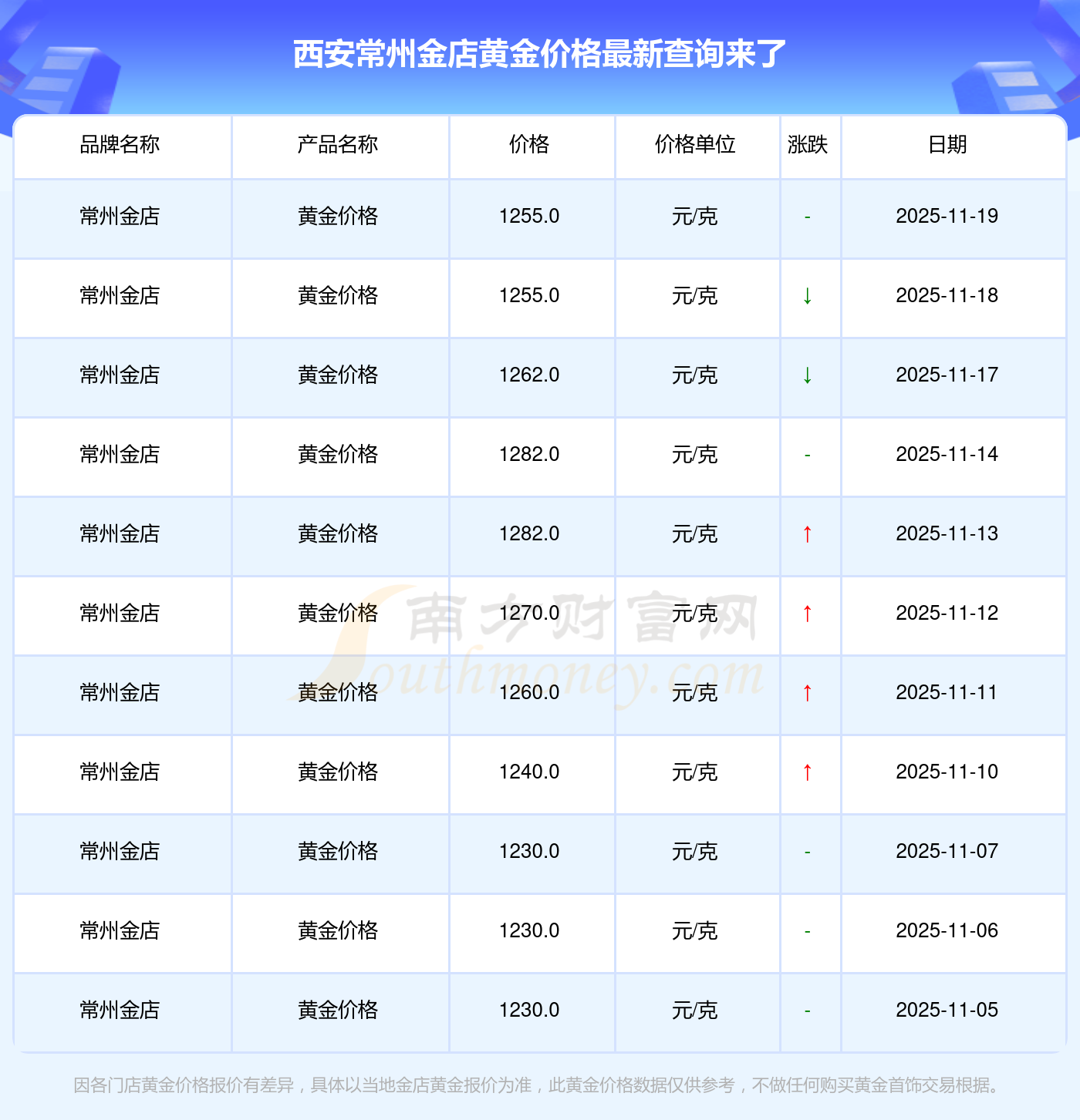 今日西安常州金店黄金价格公布请问,今天黄金价格,每克是多少1255.0元/克的黄金价格,是西安常州金店在 2025年11月19日给出的。