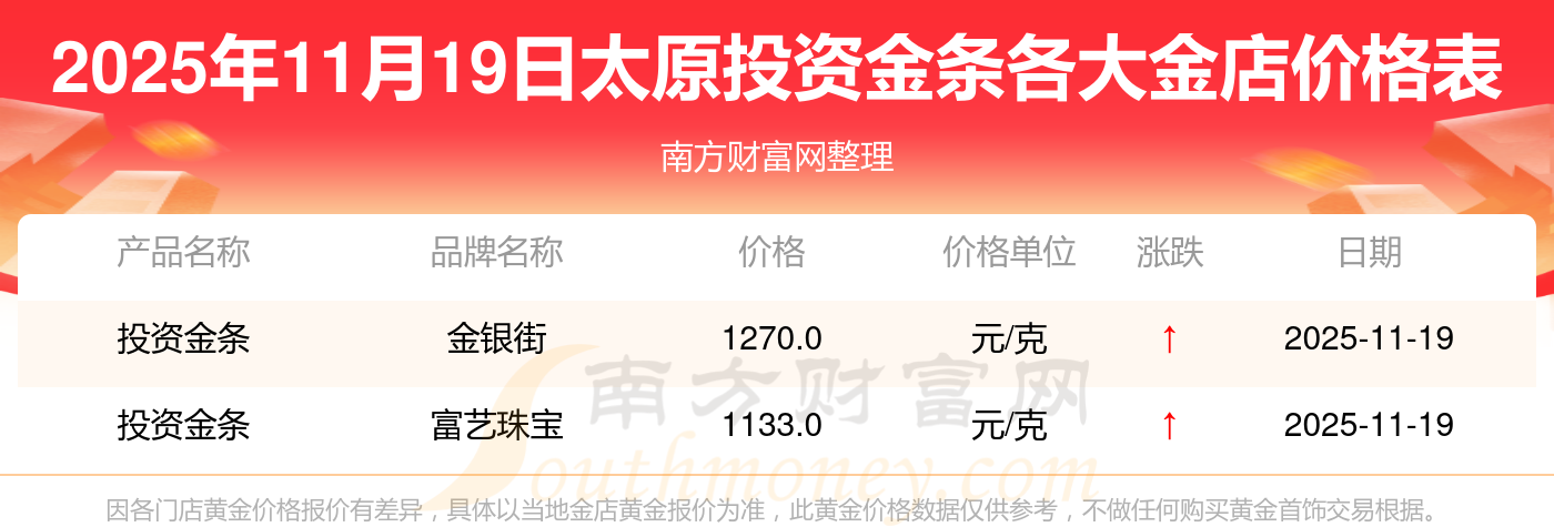 一、太原各金店投资金条价格是多少钱?2025年11月19日太原各金店投资金条价格汇总