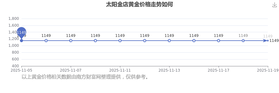 今日太阳金店 黄金价格最新的克重售价为1149.0元/克。