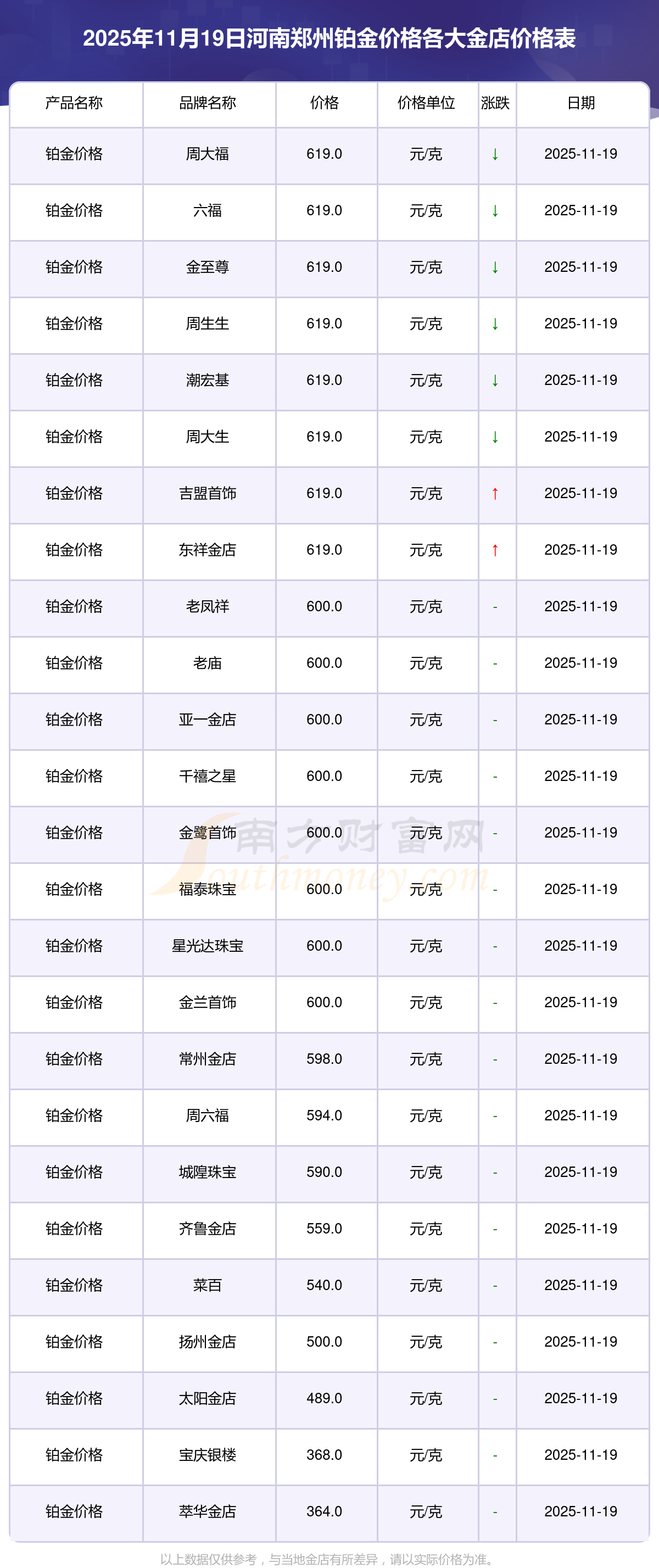 以上数据仅供参考,与当地金店有所差异,请以实际价格为准。