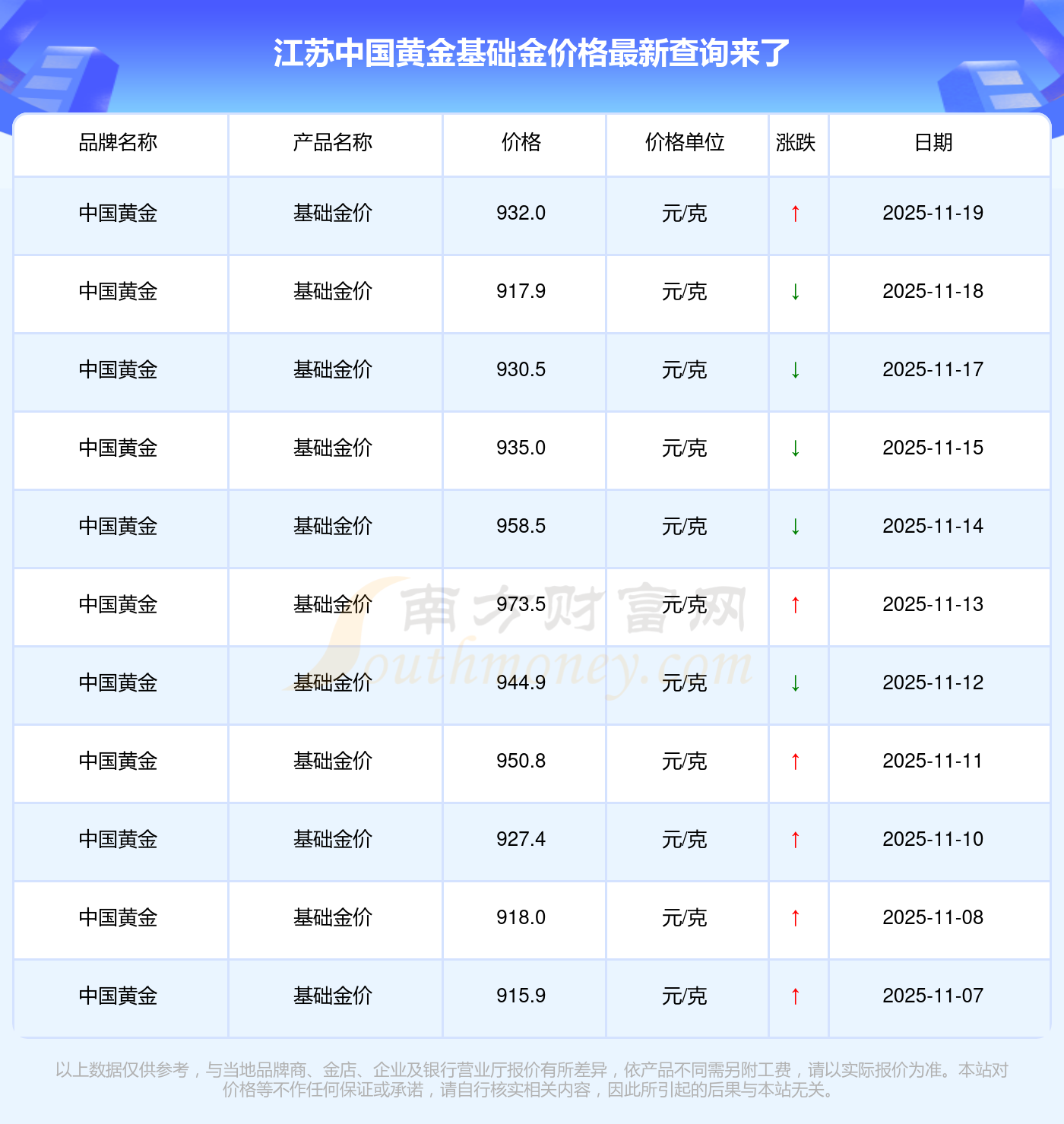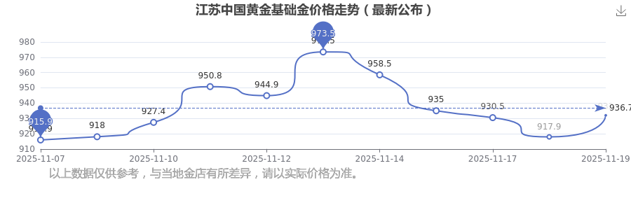 今日江苏中国黄金基础金价格最新为:932.0元/克。