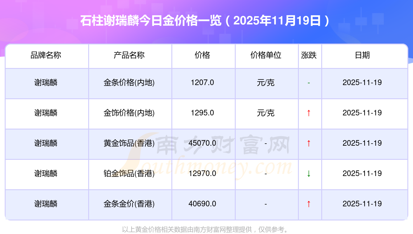 黄金价格1295.0元/克,铂金价格619.0元/克,饰品金价(内地)1295.0元/克,黄金饰品(香港)45120.0,铂金价格(香港)17690.0,金条价格(香港)40700.0,金条金价(内地)1133.0元/克,黄金价格1291.0元/克,铂金价格600.0元/克,足金价格1291.0元/克,黄金价格1263.0元/克。