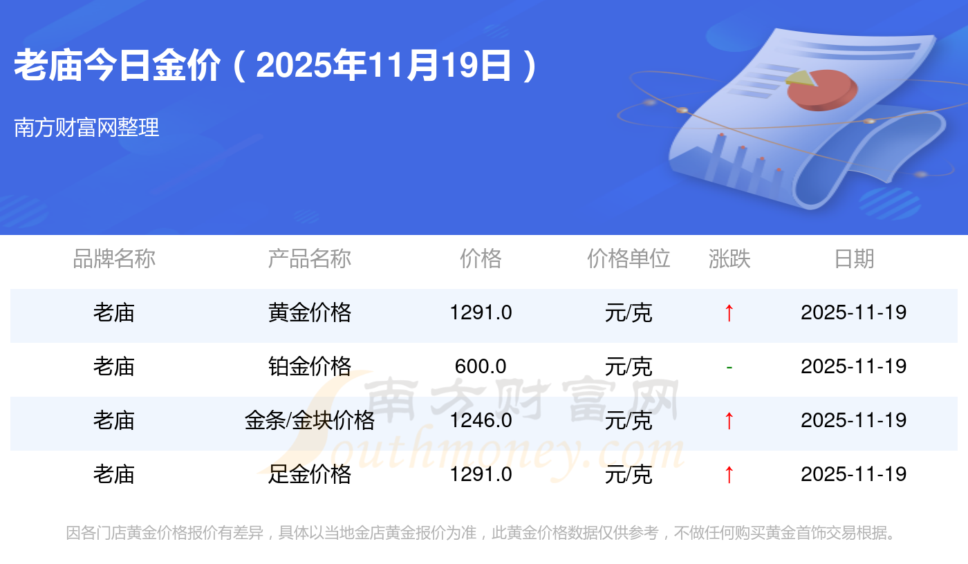 2025年11月19日,周大福、周大福、周大福、周大福、周大福、周大福、周大福、老凤祥、老凤祥、老凤祥、周六福等各大金店品牌黄金价格今日价格如下:周大福1295.0元/克、周大福619.0元/克、周大福1295.0元/克、周大福45120.0、周大福17690.0、周大福40700.0、周大福1133.0元/克、老凤祥1291.0元/克、老凤祥600.0元/克、老凤祥1291.0元/克、周六福1263.0元/克。