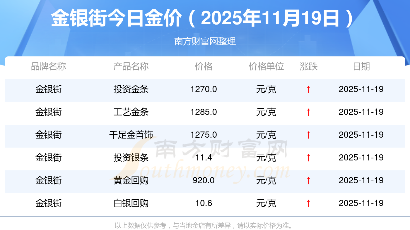以上数据仅供参考,与当地品牌商、金店、企业及银行营业厅报价有所差异,依产品不同需另附工费,请以实际报价为准。本站对价格等不作任何保证或承诺,请自行核实相关内容,因此所引起的后果与本站无关。