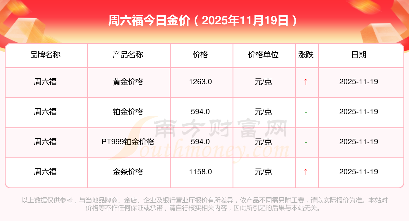 周六福金价今日价格:黄金价格1295.0元/克,铂金价格619.0元/克,饰品金价(内地)1295.0元/克,黄金饰品(香港)45120.0,铂金价格(香港)17690.0,金条价格(香港)40700.0,金条金价(内地)1133.0元/克,黄金价格1291.0元/克,铂金价格600.0元/克,足金价格1291.0元/克,黄金价格1263.0元/克。