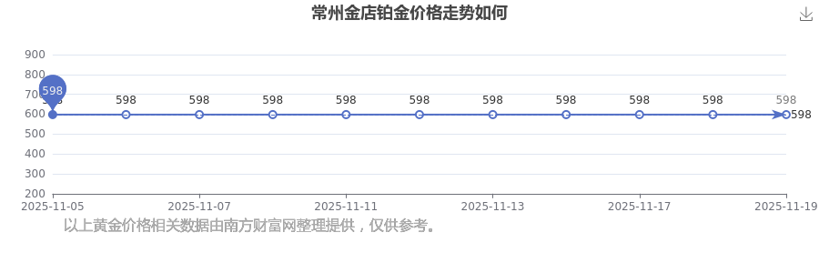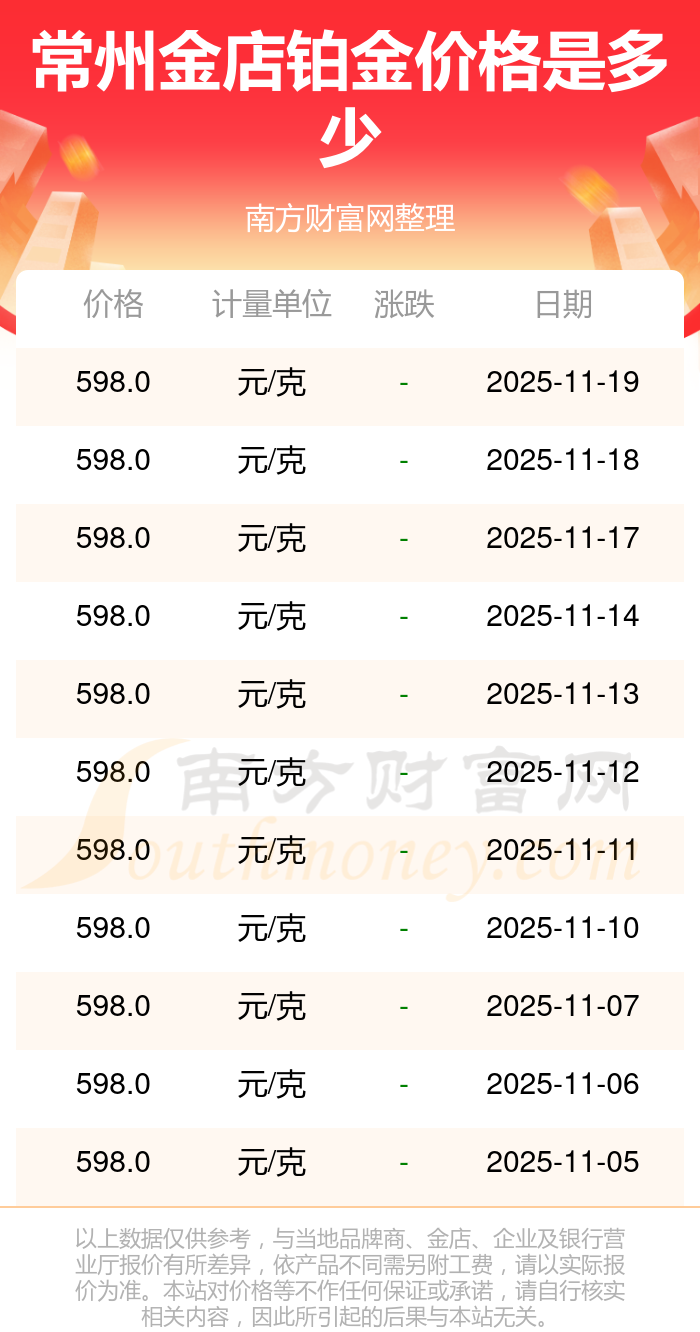 今日常州金店 铂金价格最新的市场标价为598.0元/克。