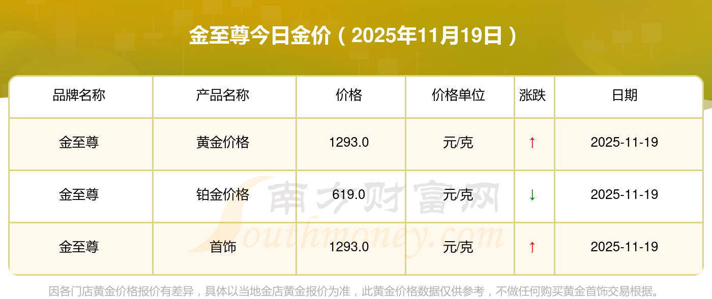 金至尊今日金价的具体数字是怎样的?数据来了:黄金价格1295.0元/克,铂金价格619.0元/克,饰品金价(内地)1295.0元/克,黄金饰品(香港)45120.0,铂金价格(香港)17690.0,金条价格(香港)40700.0,金条金价(内地)1133.0元/克,黄金价格1291.0元/克,铂金价格600.0元/克,足金价格1291.0元/克,黄金价格1263.0元/克。