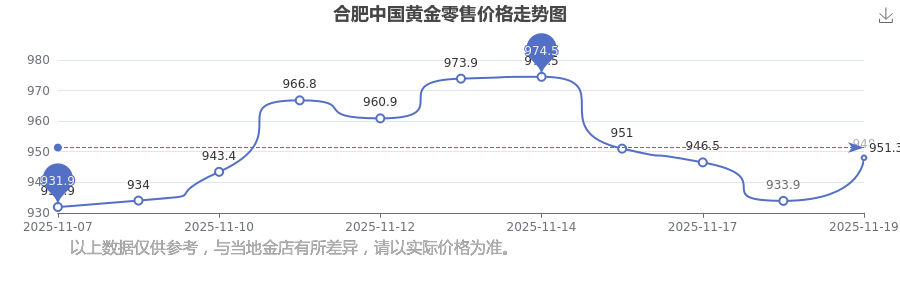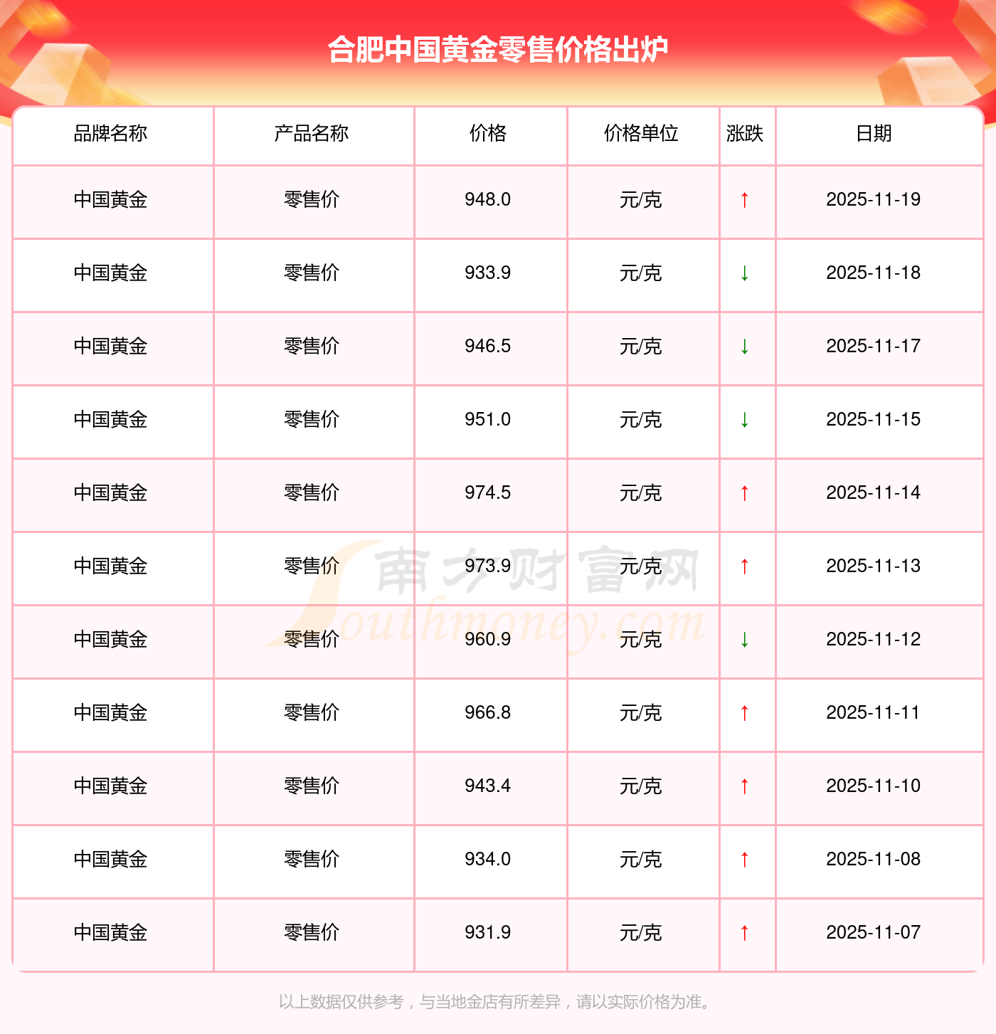 2025年11月19日,合肥中国黄金的零售价标价达到 948.0元/克。