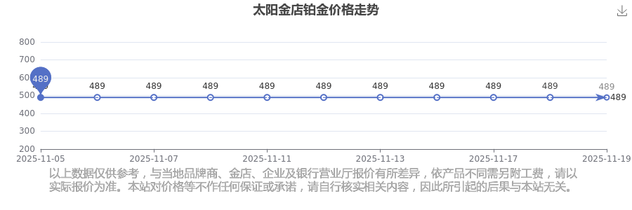 2025年11月19日太阳金店铂金价格查询:489.0元/克。