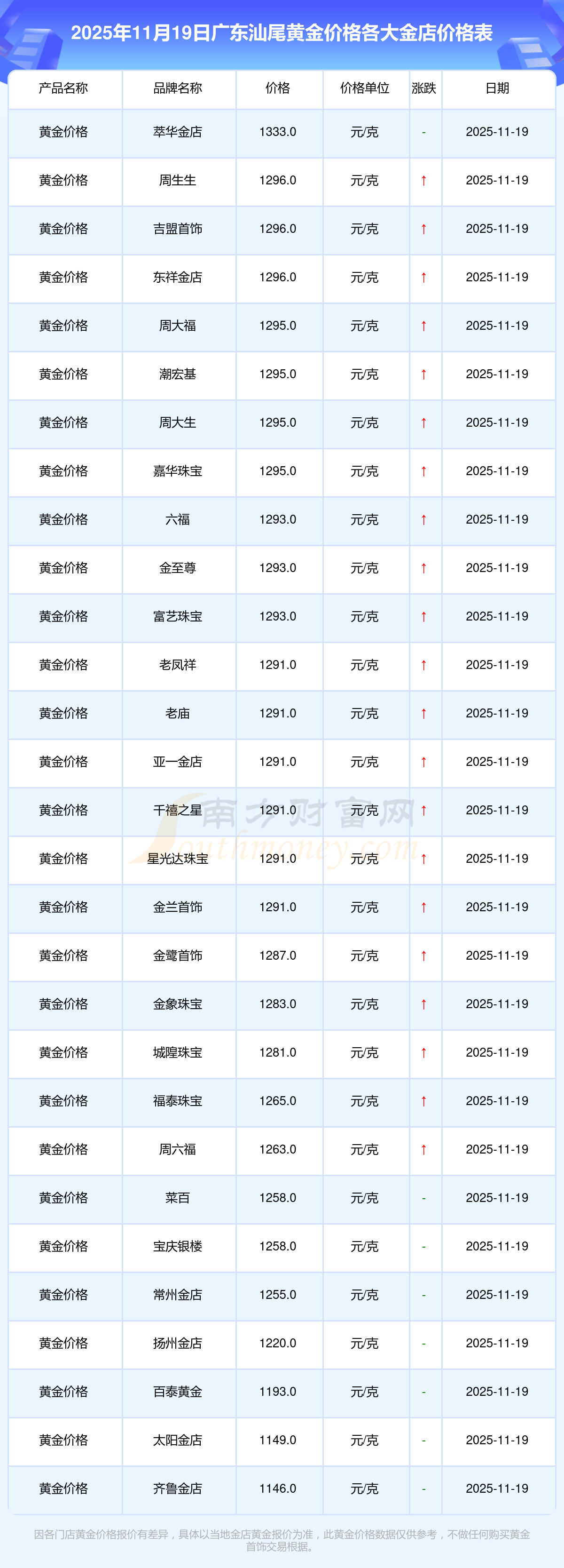 以上数据仅供参考,与当地金店有所差异,请以实际价格为准。