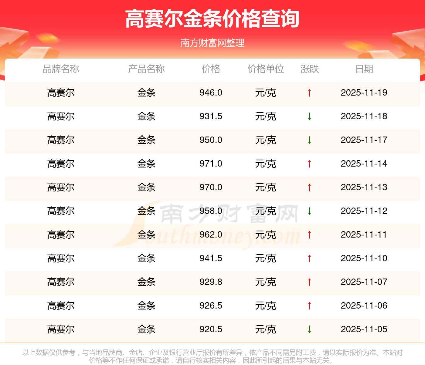 以上数据仅供参考,与当地金店有所差异,请以实际价格为准。