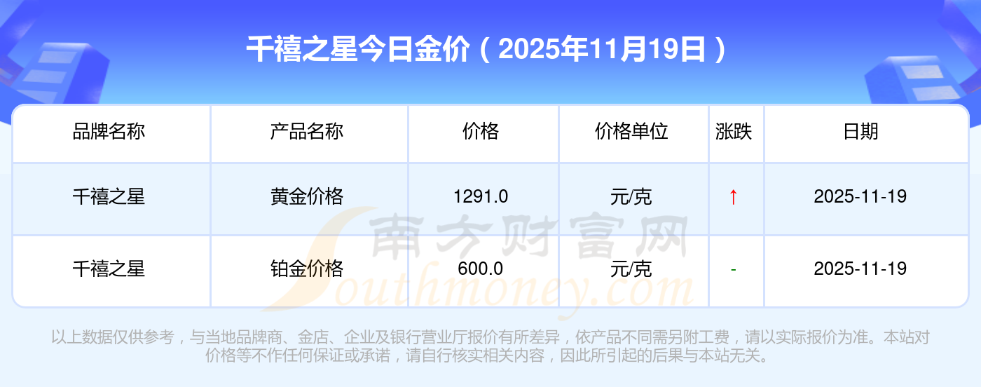 千禧之星今日金价的具体数字是怎样的?数据来了:黄金价格1295.0元/克,铂金价格619.0元/克,饰品金价(内地)1295.0元/克,黄金饰品(香港)45120.0,铂金价格(香港)17690.0,金条价格(香港)40700.0,金条金价(内地)1133.0元/克,黄金价格1291.0元/克,铂金价格600.0元/克,足金价格1291.0元/克,黄金价格1263.0元/克。