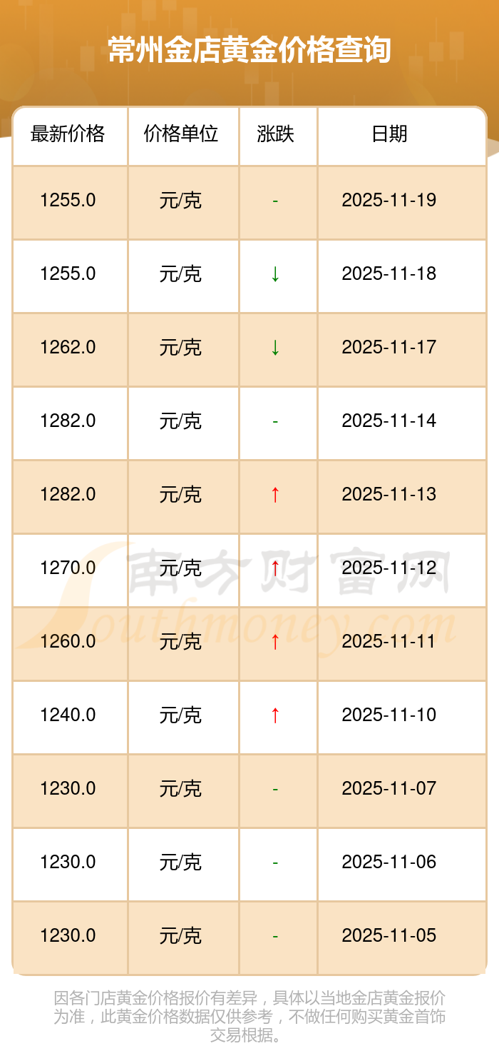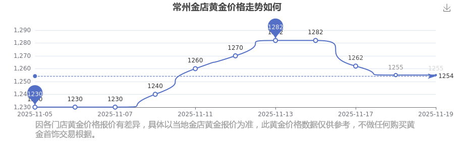 今日黄金价格情况如何?此刻黄金一克要多少钱?黄金价格一般是多少钱一克?今日常州金店黄金价格为1255.0元/克。