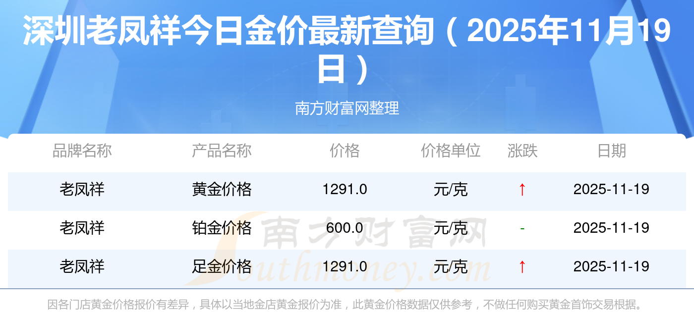今日黄金价格具体是多少?现在一克黄金卖多少钱?2025年11月19日深圳老凤祥每克黄金的市场价格是多少:黄金价格1295.0元/克,铂金价格619.0元/克,饰品金价(内地)1295.0元/克,黄金饰品(香港)45120.0,铂金价格(香港)17690.0,金条价格(香港)40700.0,金条金价(内地)1133.0元/克,黄金价格1291.0元/克,铂金价格600.0元/克,足金价格1291.0元/克,黄金价格1263.0元/克。