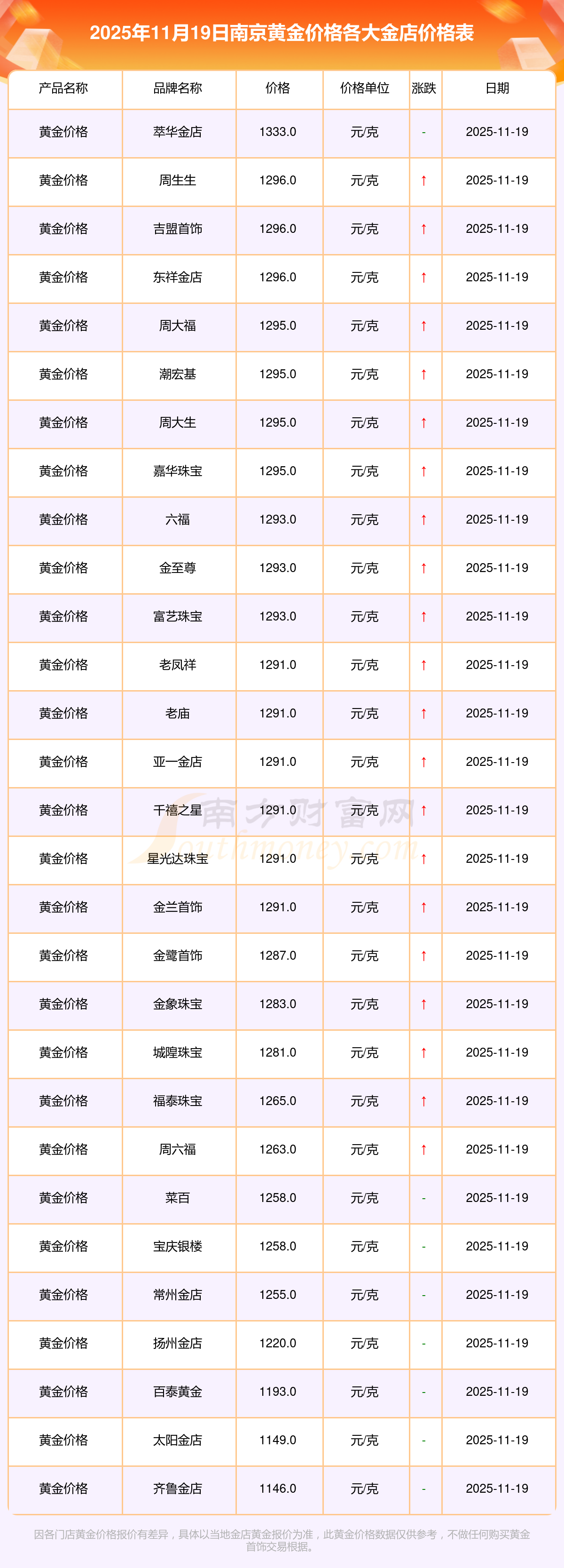 一、南京各大品牌金店今日黄金价格多少钱一克,黄金价格今日价格表2025年11月19日
