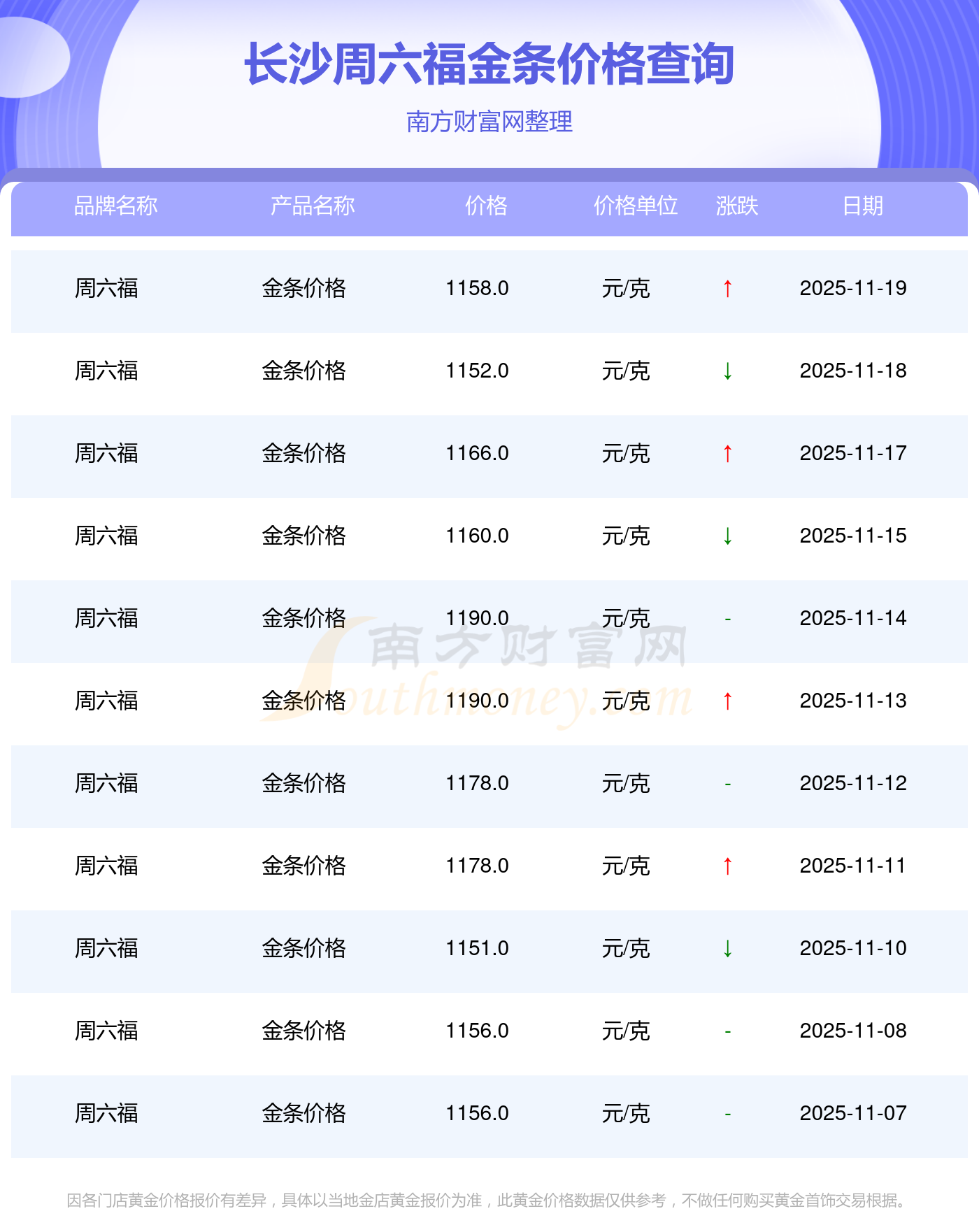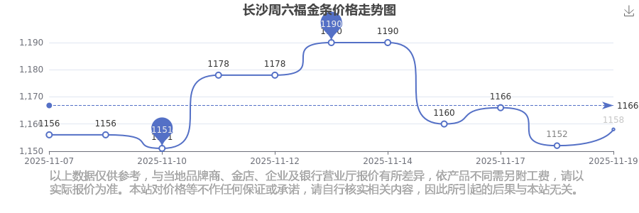 1158.0元/克的金条价格,是长沙周六福在 2025年11月19日给出的。