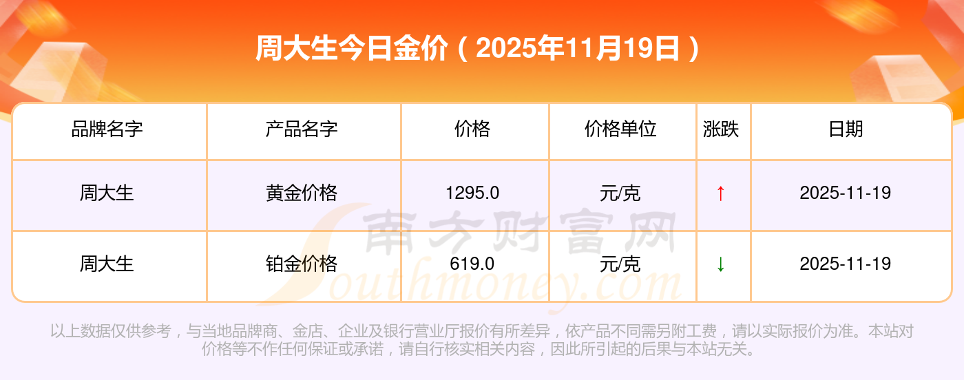 周大生今日金价的具体数字是怎样的?数据来了:黄金价格1295.0元/克,铂金价格619.0元/克,饰品金价(内地)1295.0元/克,黄金饰品(香港)45120.0,铂金价格(香港)17690.0,金条价格(香港)40700.0,金条金价(内地)1133.0元/克,黄金价格1291.0元/克,铂金价格600.0元/克,足金价格1291.0元/克,黄金价格1263.0元/克。