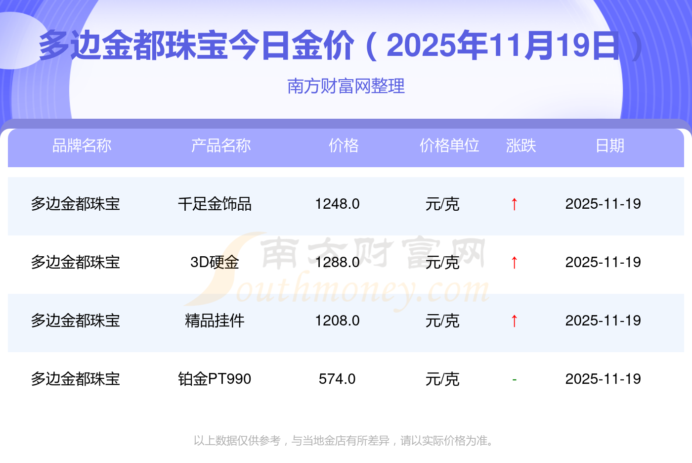 多边金都珠宝黄金在今日的定价为多少?黄金价格1295.0元/克,铂金价格619.0元/克,饰品金价(内地)1295.0元/克,黄金饰品(香港)45120.0,铂金价格(香港)17690.0,金条价格(香港)40700.0,金条金价(内地)1133.0元/克,黄金价格1291.0元/克,铂金价格600.0元/克,足金价格1291.0元/克,黄金价格1263.0元/克。