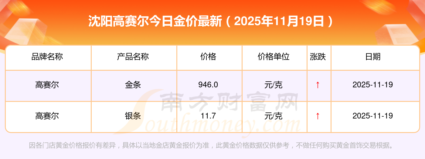 今日黄金售价多少?现在黄金一克值多少钱呢?2025年11月19日沈阳高赛尔黄金按克计价,现在多少钱一克?黄金价格1295.0元/克,铂金价格619.0元/克,饰品金价(内地)1295.0元/克,黄金饰品(香港)45120.0,铂金价格(香港)17690.0,金条价格(香港)40700.0,金条金价(内地)1133.0元/克,黄金价格1291.0元/克,铂金价格600.0元/克,足金价格1291.0元/克,黄金价格1263.0元/克。