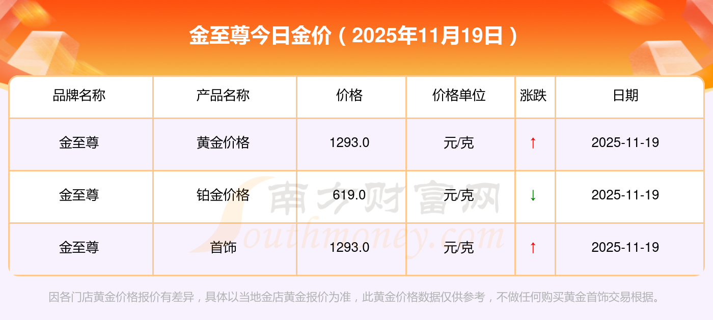 金至尊今天的黄金价值几何?详情如下: