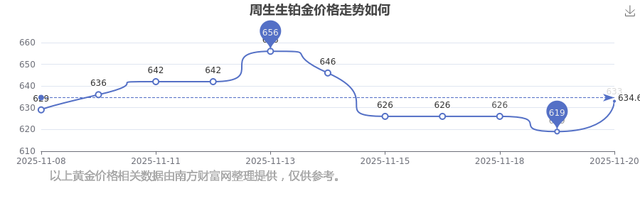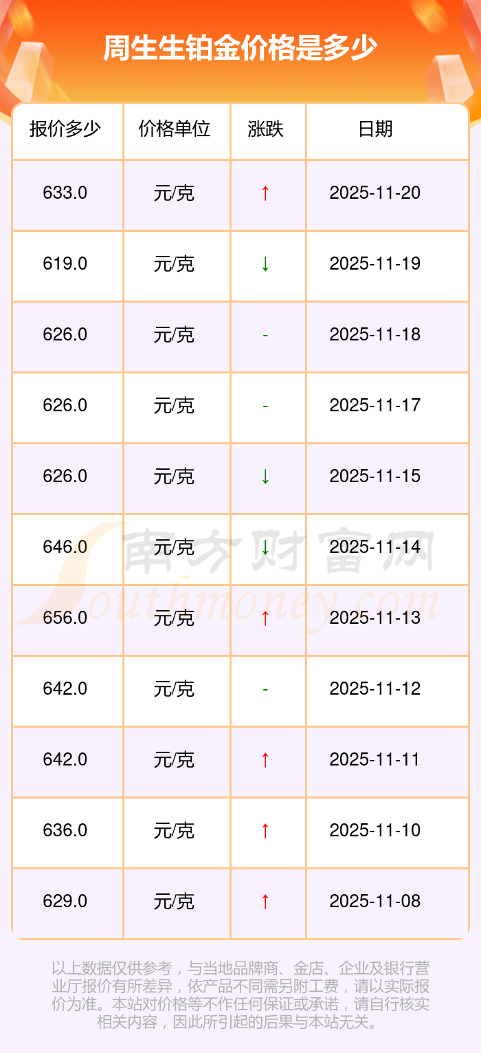 今日周生生所公布的 铂金价格最新价格为633.0元/克。