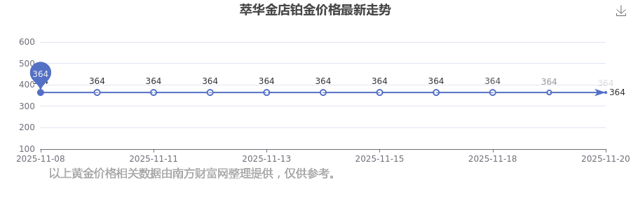 今日萃华金店铂金价格是364.0元/克。