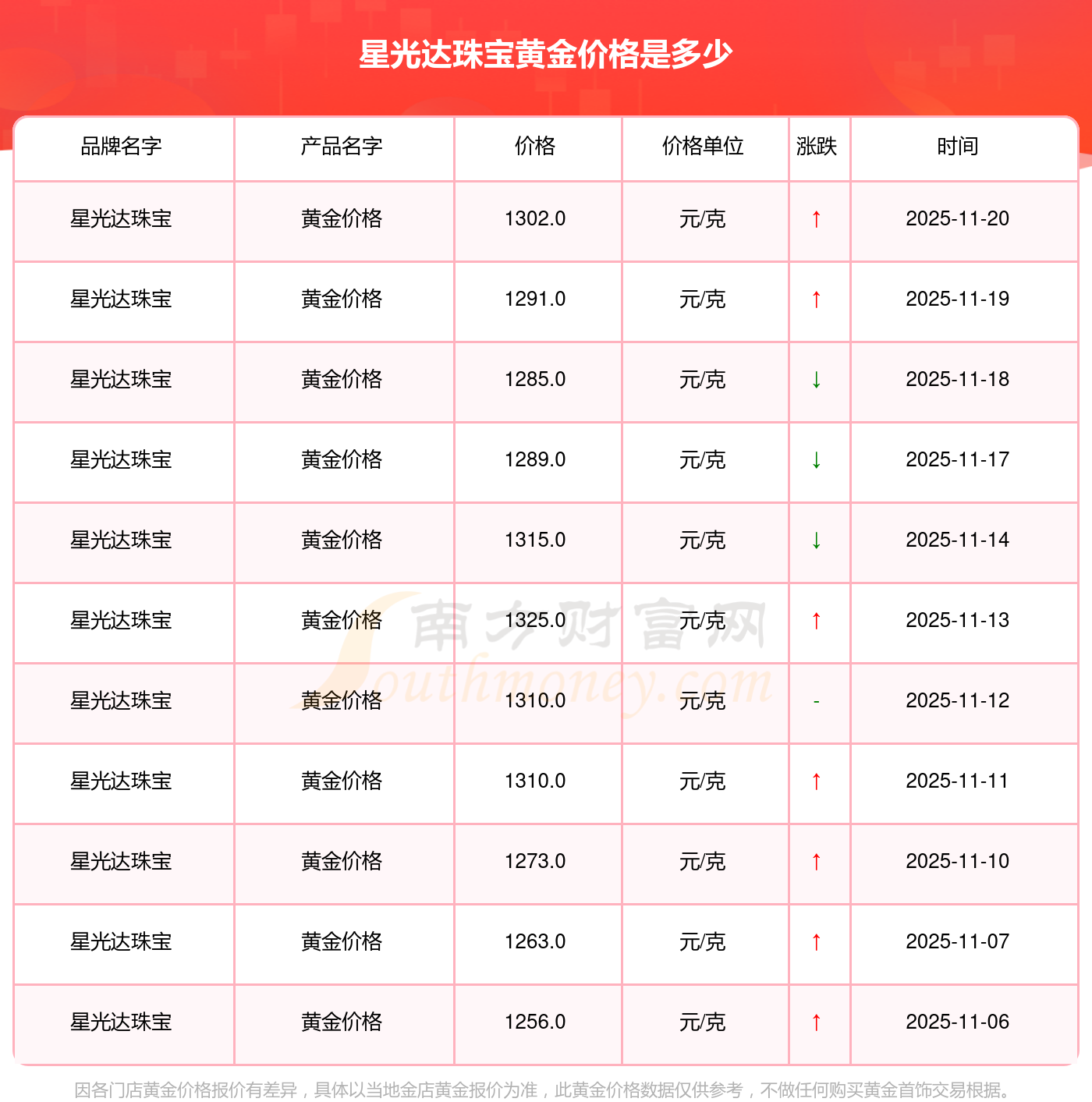 今日黄金价格查询_现在金价黄金一克多少钱,黄金价格是多少钱一克?属于优良导电导热材料的黄金,具备良好的导热特性。鉴于其化学稳定性高、抗氧化性强,能够制作高精度电子元件,故而在电子工业的特殊电路设计中常用到它。星光达珠宝今日黄金价格的最新标价为1302.0元/克。