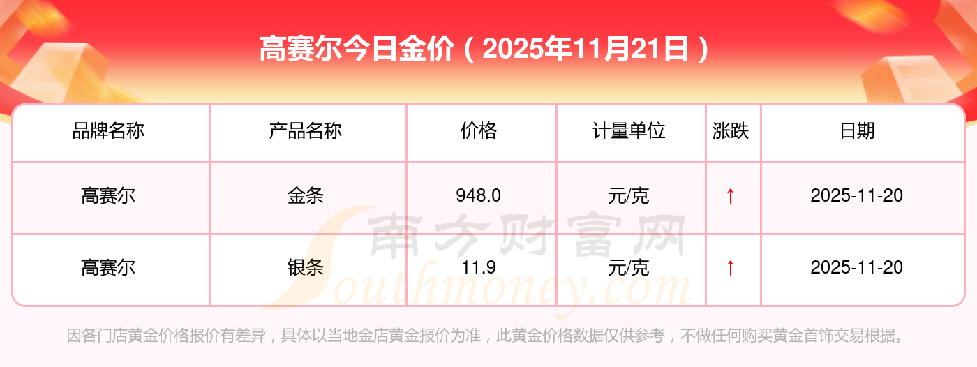 以上数据仅供参考,与当地金店有所差异,请以实际价格为准。