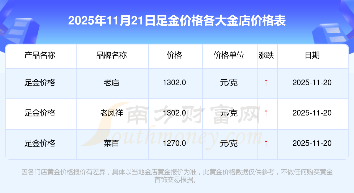 今天是2025年11月21日,菜百、菜百、菜百、菜百、菜百、菜百、菜百、菜百、老庙、老庙、老庙等各大金店品牌足金价格最新价格如下:菜百540.0元/克、菜百540.0元/克、菜百545.0元/克、菜百552.0元/克、菜百1060.0元/克、菜百392.0元/克、菜百1270.0元/克、菜百11.8元/克、老庙1302.0元/克、老庙600.0元/克、老庙1257.0元/克。