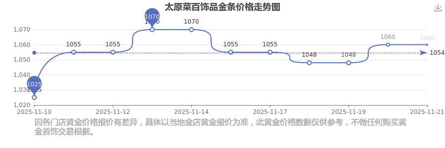 今日太原菜百饰品金条价格的价格为1060.0元/克。