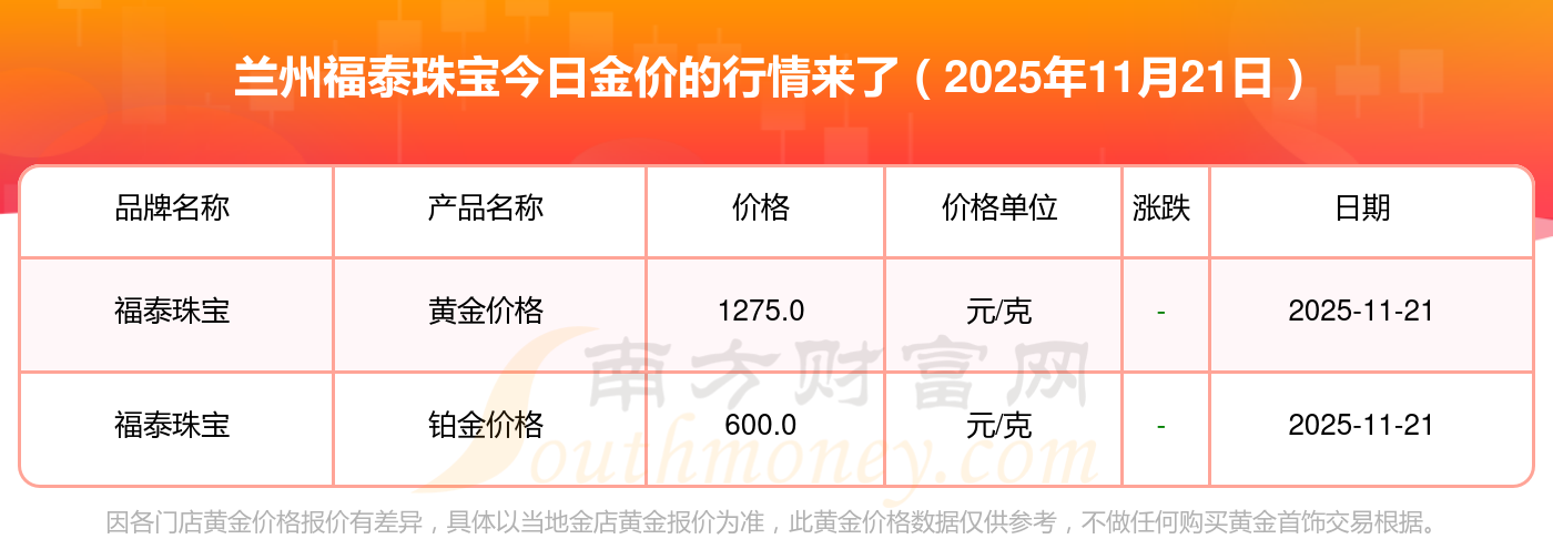 今天黄金价位是多少?现在一克黄金的价格是多少呀?兰州福泰珠宝金价今日价格: