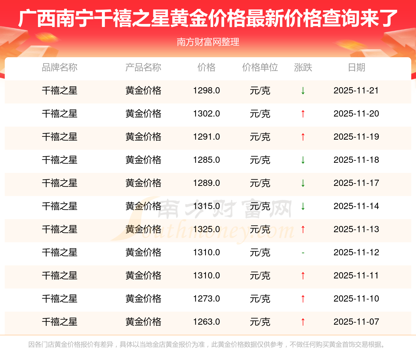 以上数据仅供参考,与当地金店有所差异,请以实际价格为准。
