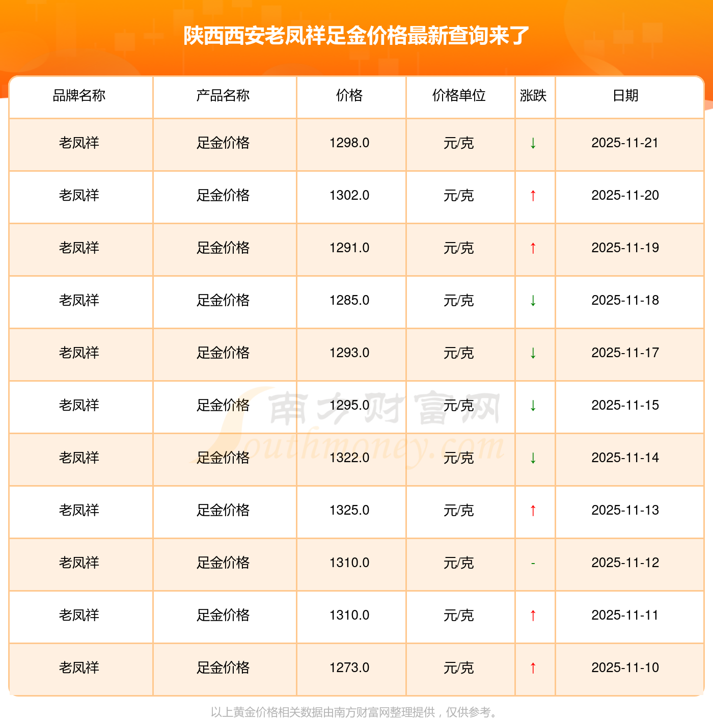 以上数据仅供参考,与当地金店有所差异,请以实际价格为准。