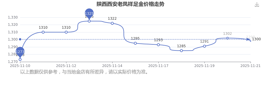 今日陕西西安老凤祥足金价格:1298.0元/克。