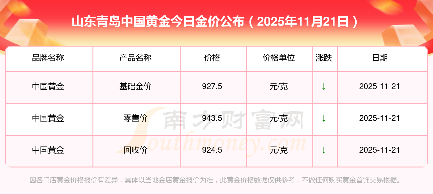 今日黄金价格查询_现在金价黄金一克多少钱,黄金价格是多少钱一克?2025年11月21日山东青岛中国黄金黄金的单价,一克为多少?黄金价格1305.0元/克,铂金价格616.0元/克,饰品金价(内地)1305.0元/克,黄金饰品(香港)45110.0,铂金价格(香港)17570.0,金条价格(香港)40690.0,金条金价(内地)1143.0元/克,黄金价格1298.0元/克,铂金价格600.0元/克,足金价格1298.0元/克,黄金价格1266.0元/克。