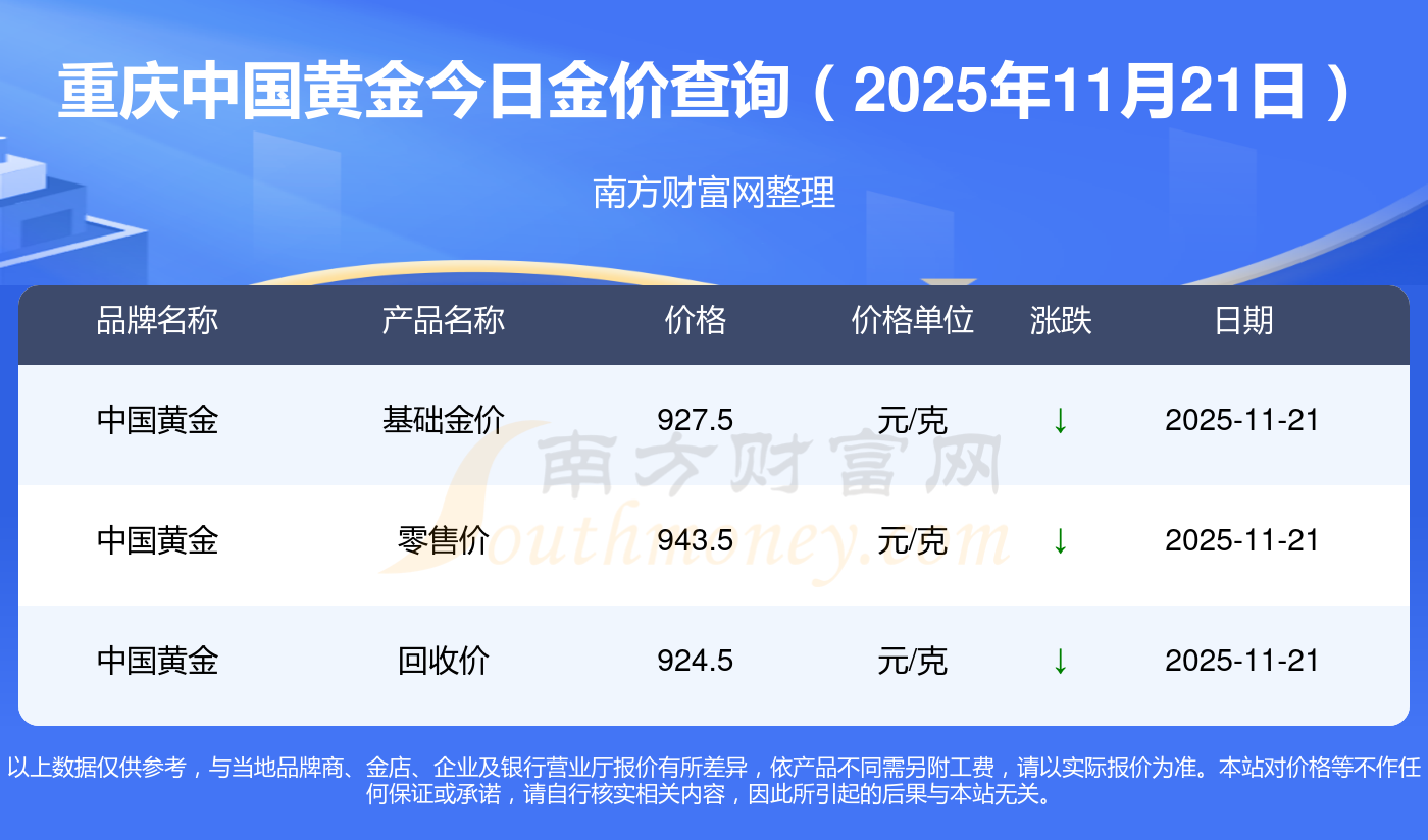 现在重庆中国黄金黄金价格是多少钱1克?今日重庆中国黄金金价表一览